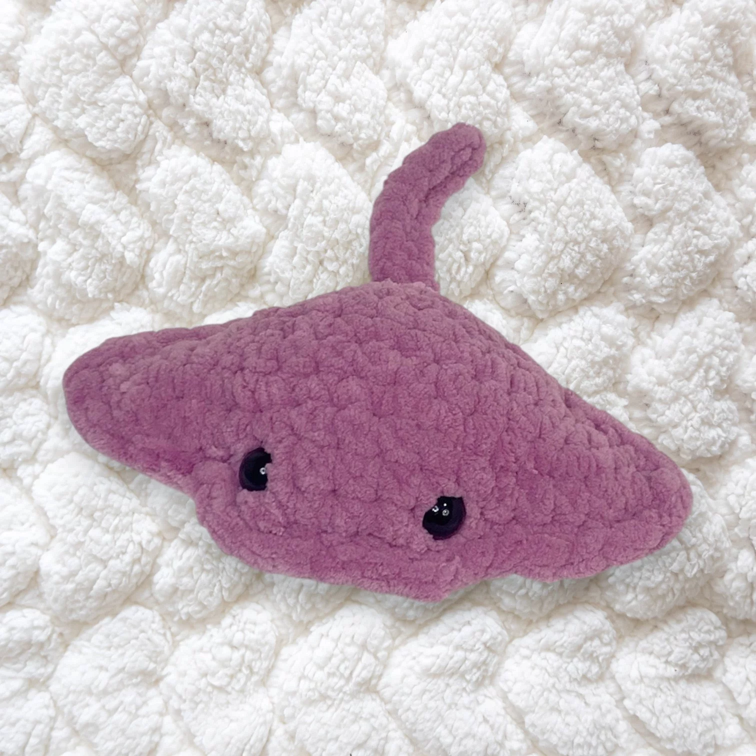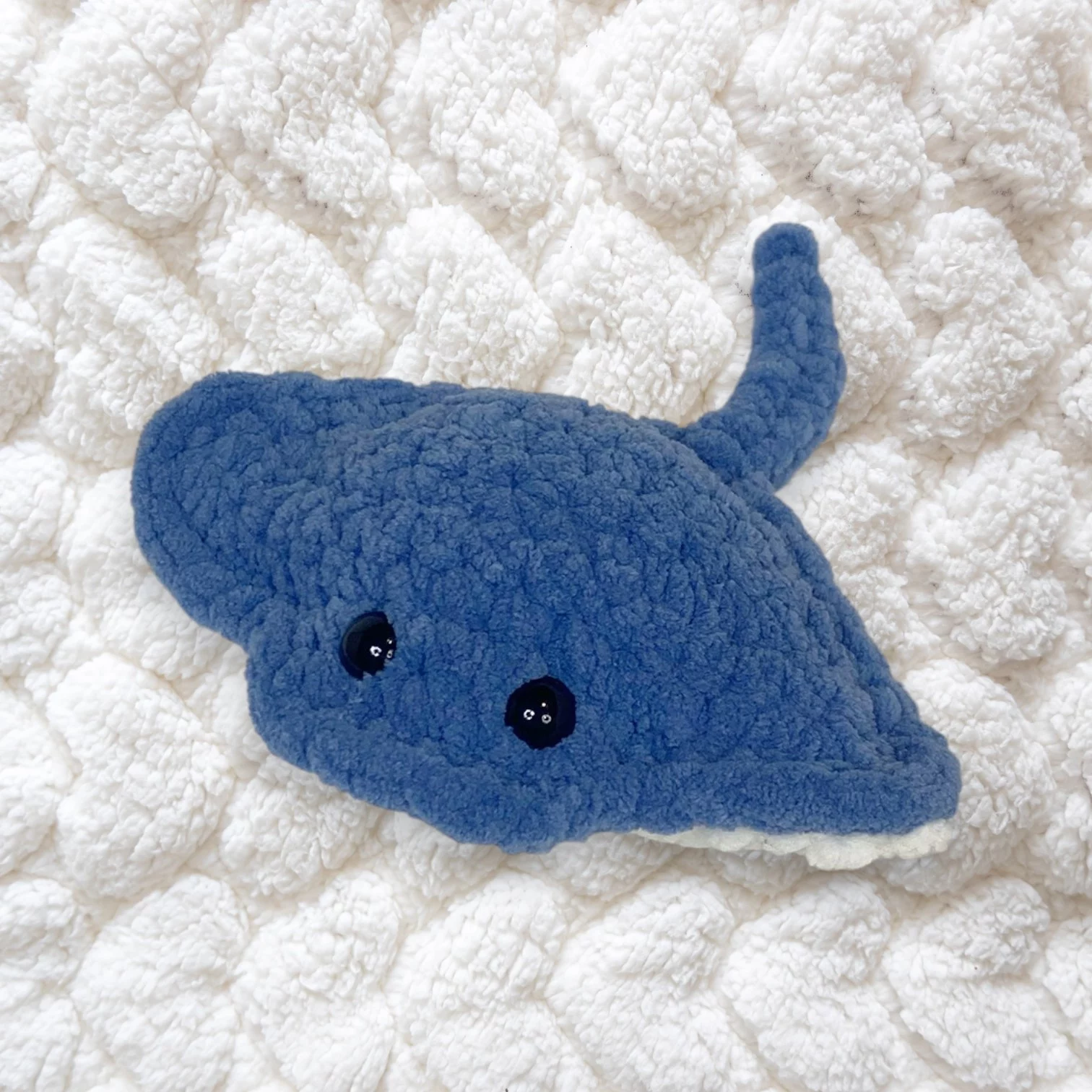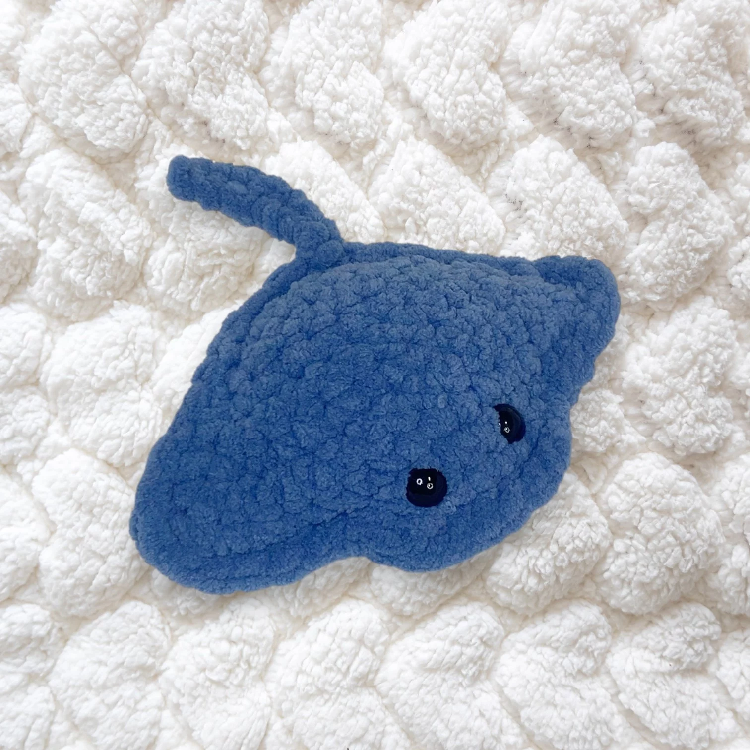 I handcraft every stingray with soft, plush yarn that feels wonderful to the touch. Each stitch is made with care, ensuring your plushie is both durable and adorable. As a result, no two stingrays are ever exactly alike—each one is a tiny, handmade treasure.